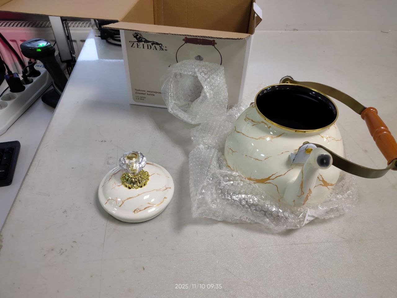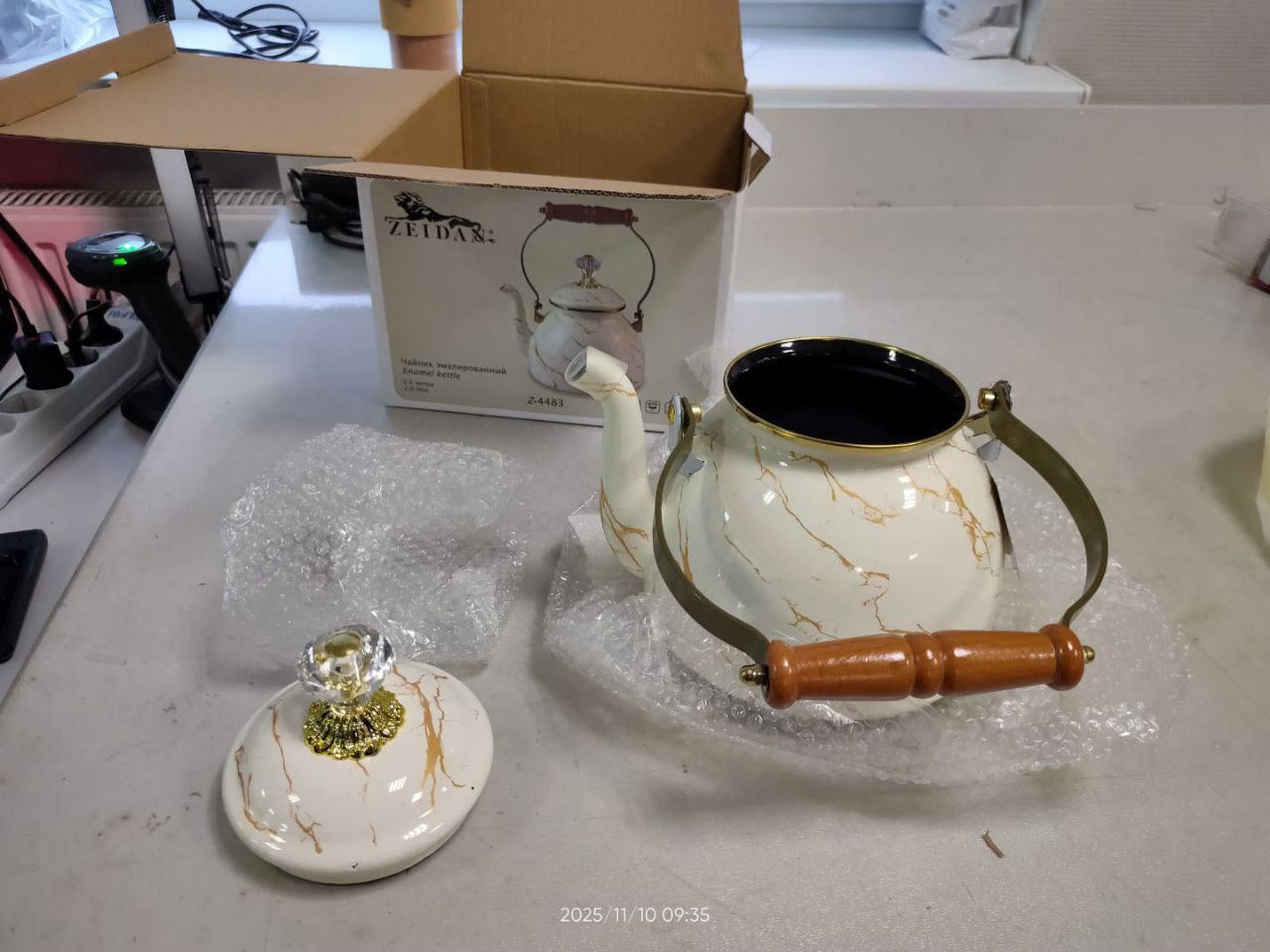 Чайник для плиты эмалированный Zeidan Z-4483 Marble с объемом 2.6 литра станет отличным дополнением вашей кухни. Он подходит для использования на всех типах плит, включая газовые и индукционные, что делает его универсальным помощником при приготовлении чая или других горячих напитков. Удобная керамическая ручка и крышка обеспечивают комфортное и безопасное использование, а качественное эмалированное покрытие предотвращает пригорание и облегчает очистку.