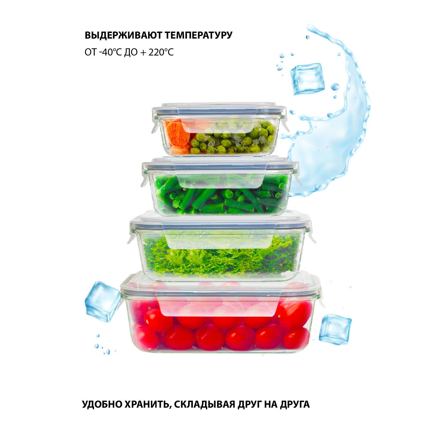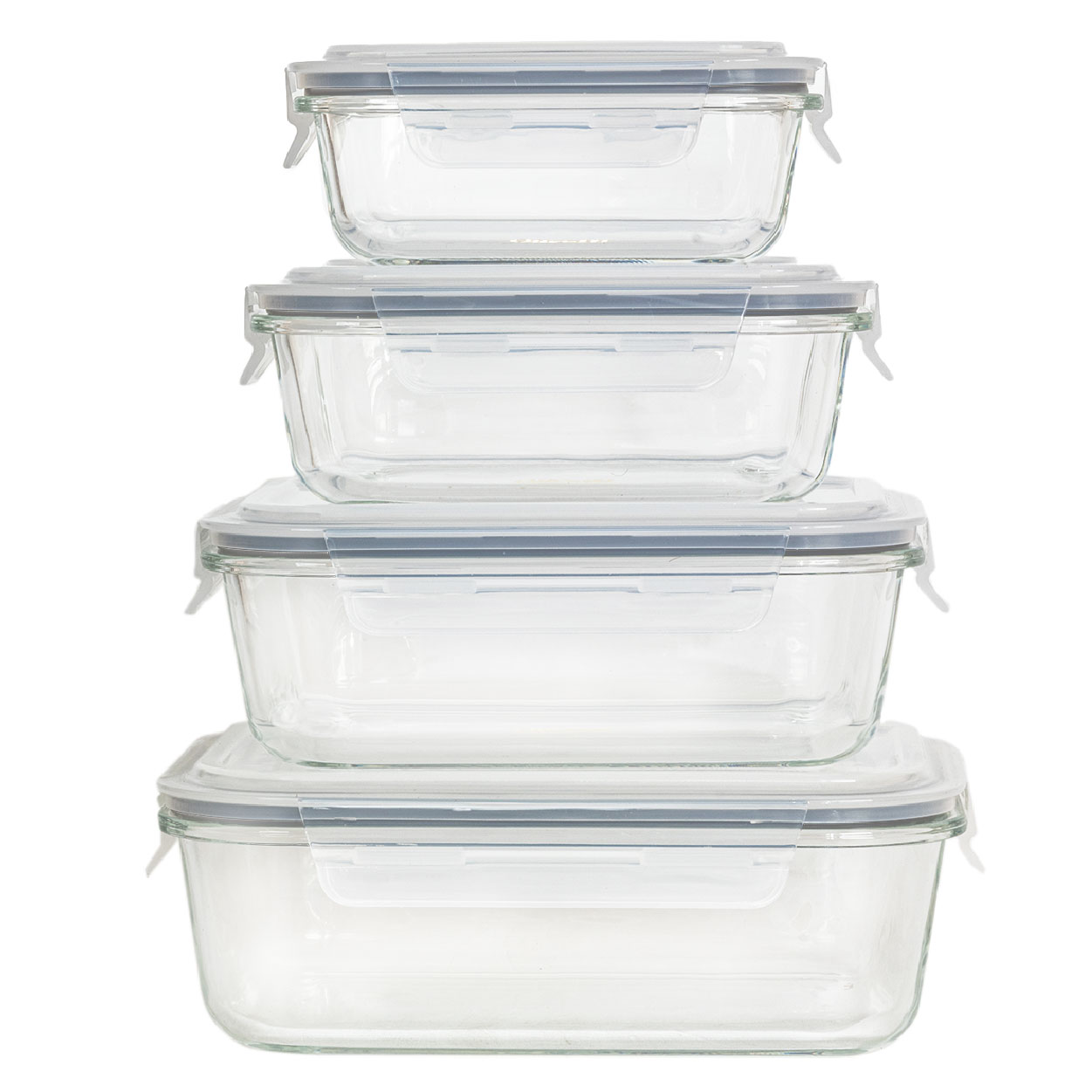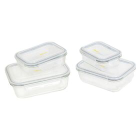 Комплектация: стеклянный контейнер 4 шт., пластиковая герметичная крышка 4 шт.