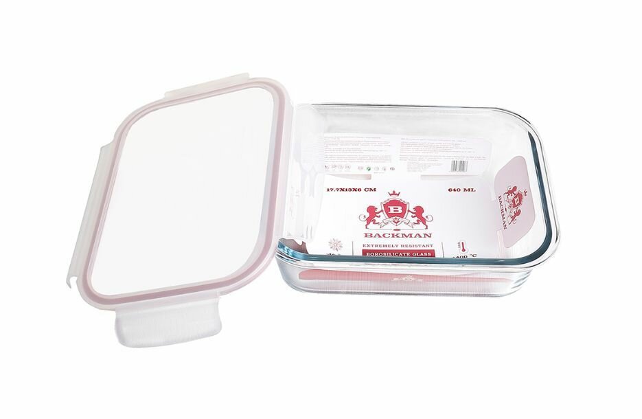 Контейнер для хранения, 17.7х13х6 см 640 мл, корпус из термостойкого боросиликатного стекла, крышка из пластика.
