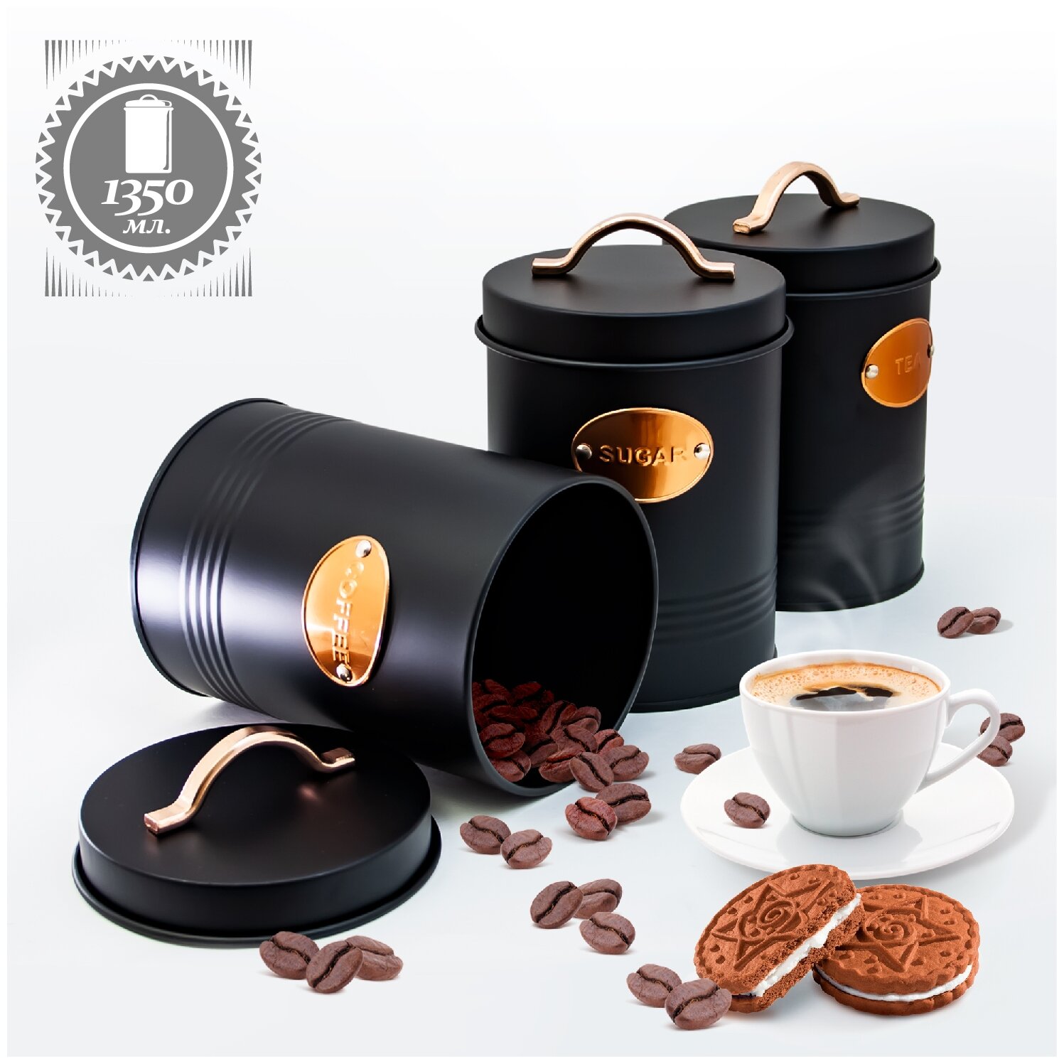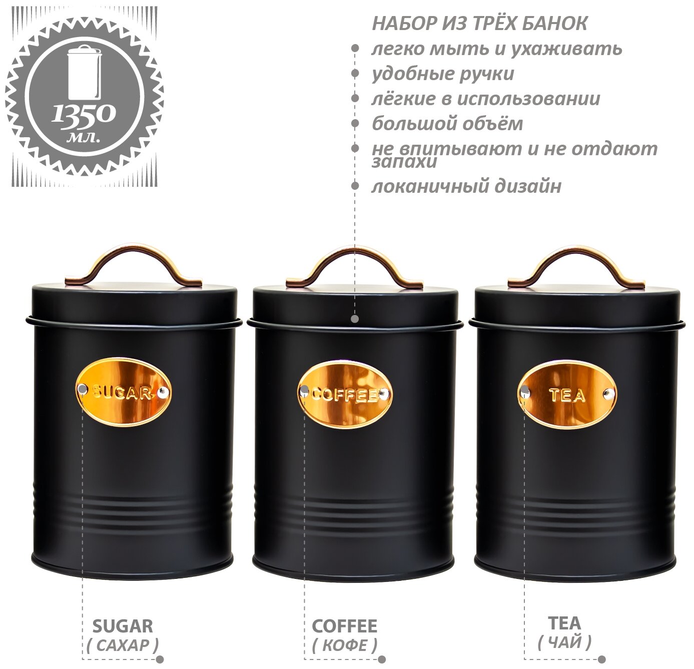 Стильный дизайн набора банок впишется в любой интерьер.
