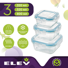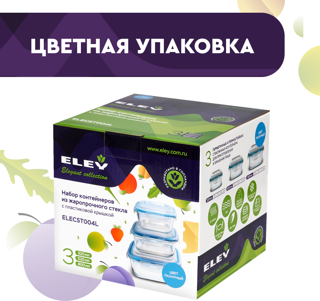 Набор контейнеров пищевых Eley Elegant Collection из жаропрочного боросиликатного стекла предназначен для хранения продуктов. Контейнеры можно использовать в микроволновой печи и духовке (без крышки), стеклянные формы выдерживают нагрев до +400 С. Подходят для использования в холодильных и морозильных камерах; разрешено мыть в посудомоечных машинах.