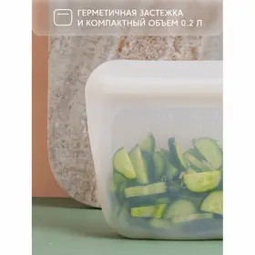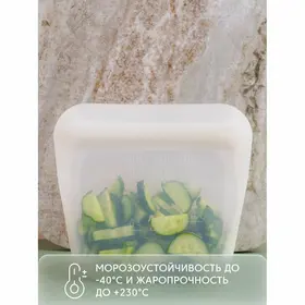 Вес - 84. Срок службы - 2 года. Безопасный пищевой силикон. Можно мыть в ПМ. Мойка в посудомоечной машине. Жаропрочный до 230 гард.. Герметичность 100%. Морозоустойчивый до -40 град.. Назначение - емкость для хранения. Предметов в наборе - 1