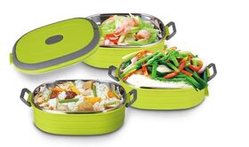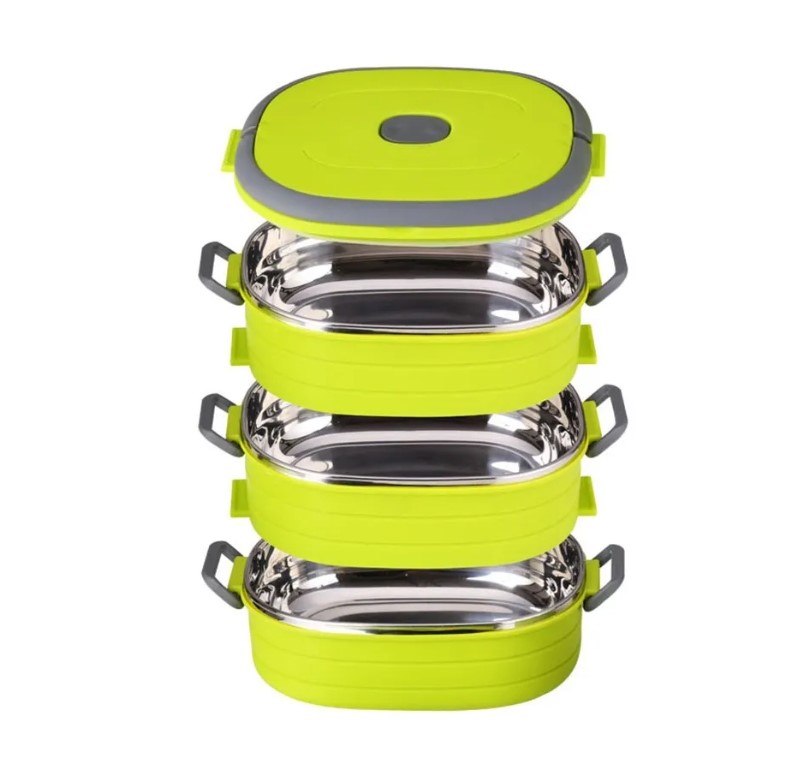 Термоконтейнер состоит из 3 емкостей объемом 900 мл каждая.