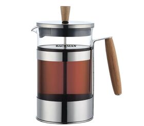 Изысканный френч-пресс в скандинавском стиле объемом 800 мл украсит вашу кухню. Корпус из нержавеющей стали с деревянной ручкой, крышка не нагревается, колба из термостойкого стекла легко вынимается, поэтому ее можно мыть в посудомоечной машине. Упаковка - стильная подарочная коробка.