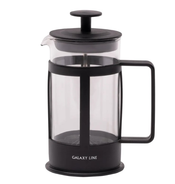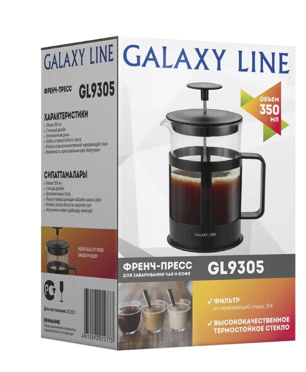 Френч-пресс GALAXY LINE GL9305 предназначен для приготовления чая и кофе. По вкусу, аромату и цвету кофе из френч-пресса GALAXY LINE отличается от сделанного в кофемашине или сваренного в турке. После отжима и фильтрации он имеет более мягкий и насыщенный вкус, более раскрытый и естественный запах. В напитке, приготовленном таким способом, сохраняется больше полезных и ароматических веществ. Данная модель имеет компактный размер и объем 350 мл. Френч-пресс выполнен в корпусе из высококачественного пищевого пластика с колбой из термостойкого стекла. Оно экологически безопасно, огнеупорно, может по долгу соприкасаться с напитками, не придавая им постороннего привкуса. Дополнительным преимуществом данной модели является наличие фильтра из нержавеющей стали марки 304. Благодаря специальному фильтру и прессу Вы можете использовать чайные листья любых сортов и разной величины, а также готовить "капучино", кофе по-восточному, эспрессо, - как вам больше нравится. Френч-пресс GL9305 имеет эргономичную ручку и стильный современный дизайн, поэтому станет украшение любого интерьера. Техника для приготовления горячих напитков GALAXY LINE разработана для того, чтобы создать атмосферу комфорта и уюта в Вашем доме.