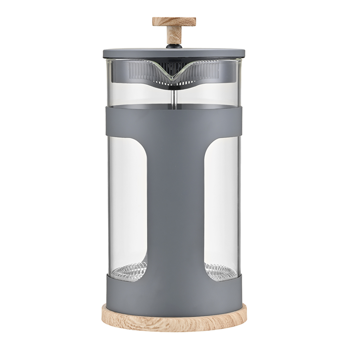 Колба сделана из жаропрочного боросиликатного стекла, устойчивого к резкому перепаду температуры. Пресс-фильтр с уплотнительным кольцом из нержавеющей стали. Пластиковый корпус не нагревается, что минимизирует риск получения ожогов. Форма носика идеальна для наливания напитков и препятствует образованию подтеков.