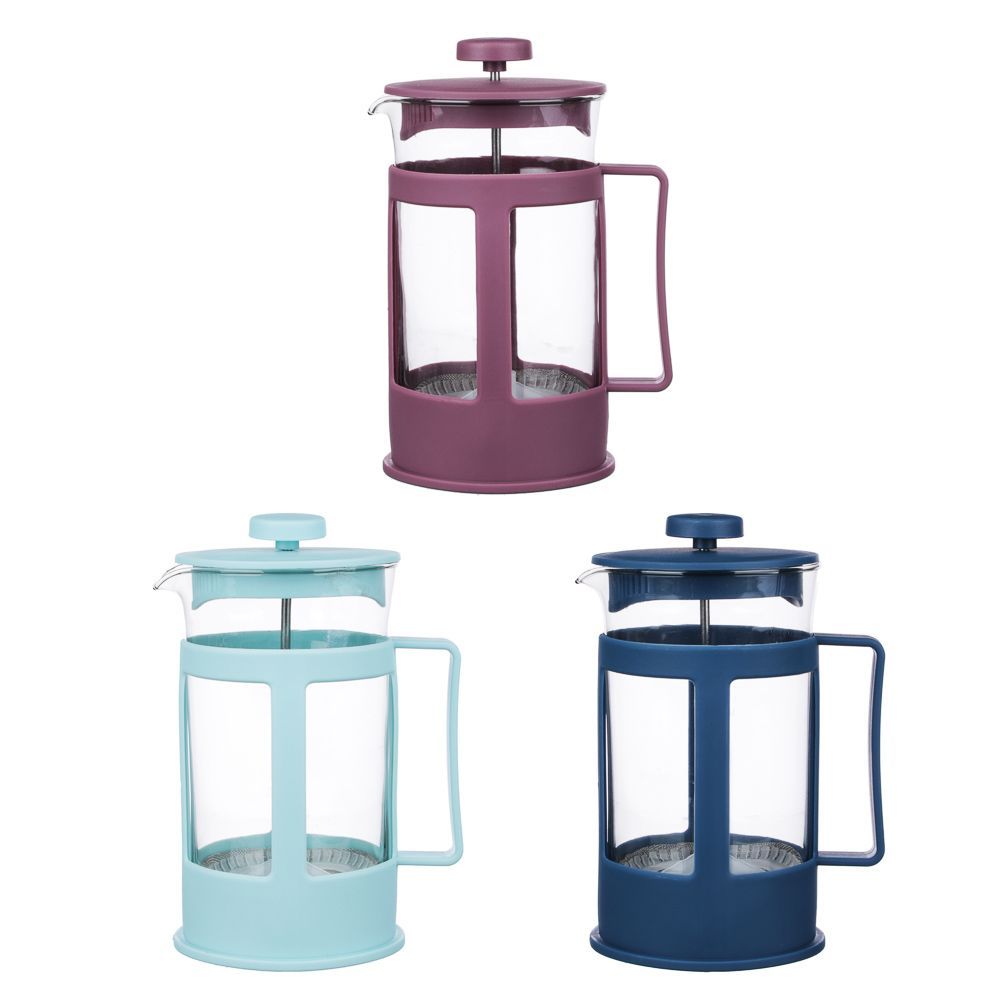 Стеклянный френч-пресс имеет пластиковый корпус и надежный пластиковый фильтрующий поршень. Изготовлен из экологически чистых материалов. Удобный носик правильной формы исключает проливание жидкости.Материал: Термостойкое стекло, пластик