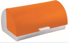 Хлебница. Размеры: 39*28*19 см.Корпус из нерж.стали. Крышка оранжевая пластиковая. Алюминиевая ручка. Матовая поверхность. Состав: нержавеющая сталь, пластик.