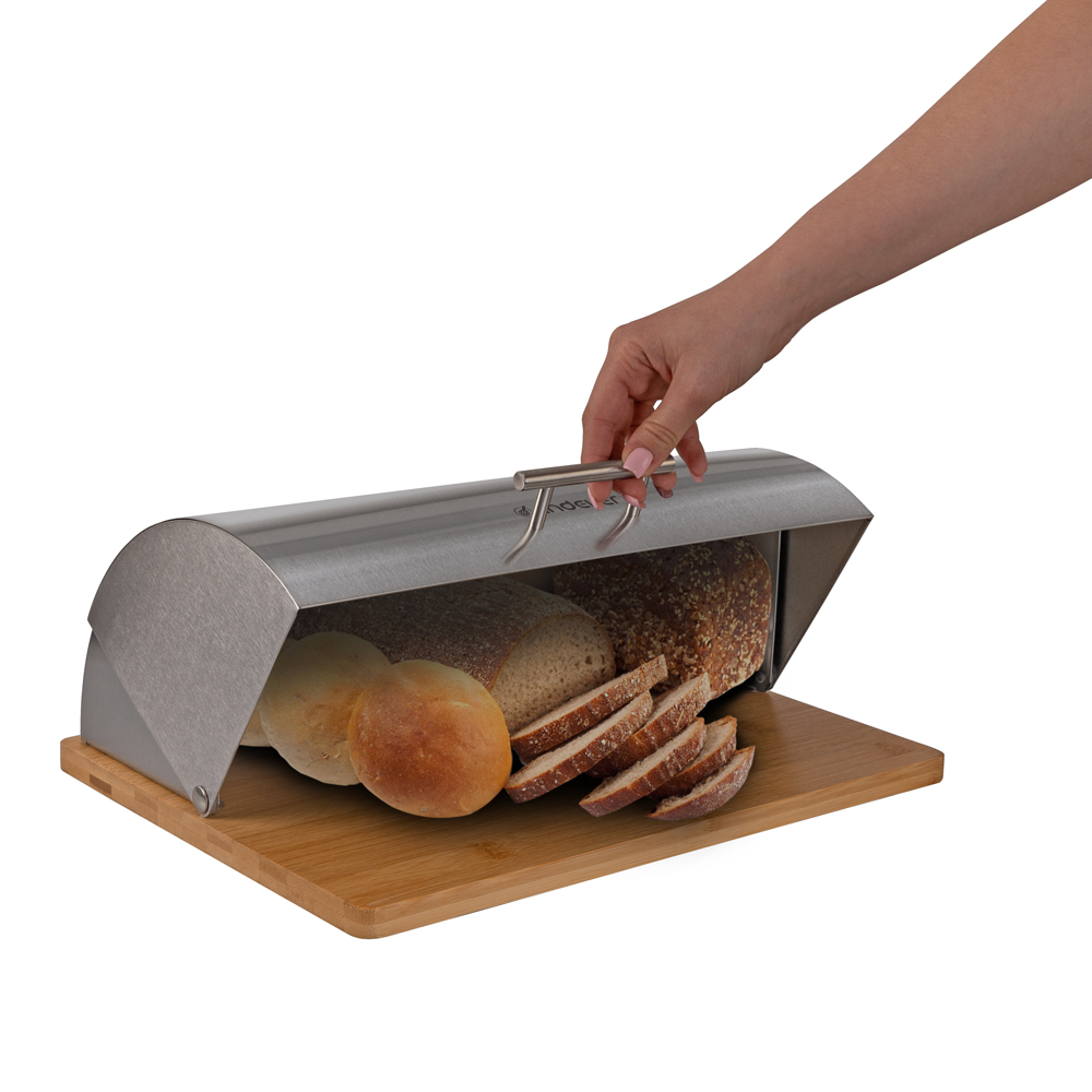 Нескользящие силиконовые ножки, Наличие стопера, Удобное углубление для хранения ножа, Можно резать хлеб прямо в хлебнице