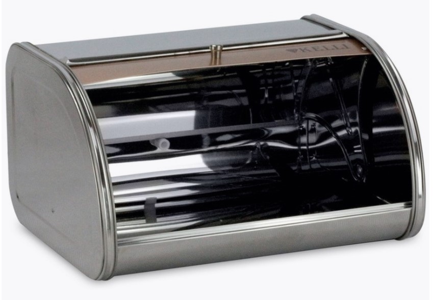 Хлебница Kelli KL-2141 стала обладательницей вместительного внутреннего отделения, в котором вы сможете хранить большое количество хлебобулочных изделий. При изготовлении корпуса этого кухонного аксессуара производитель отдал предпочтение нержавеющей стали, которая отличается эстетичным внешним видом и не подвержена негативному воздействию коррозии.