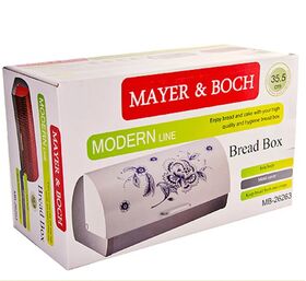 Хлебница MAYER&BOCH позволит надолго сохранить свежесть, мягкость, аромат хлеба и других хлебобулочных изделий. Хлебница выполнена в классическом дизайне с красивым узором. Сталь не окисляется, не ржавеет и не вступает в реакцию с пищевыми продуктами - это прочный и неприхотливый в уходе материал. Хлебница снабжена удобной крышкой с ручкой. Хлебница имеет компактные размеры, поэтому не займет много места. Эксклюзивный дизайн, эстетика и функциональность хлебницы делают ее превосходным аксессуаром на Вашей кухне.