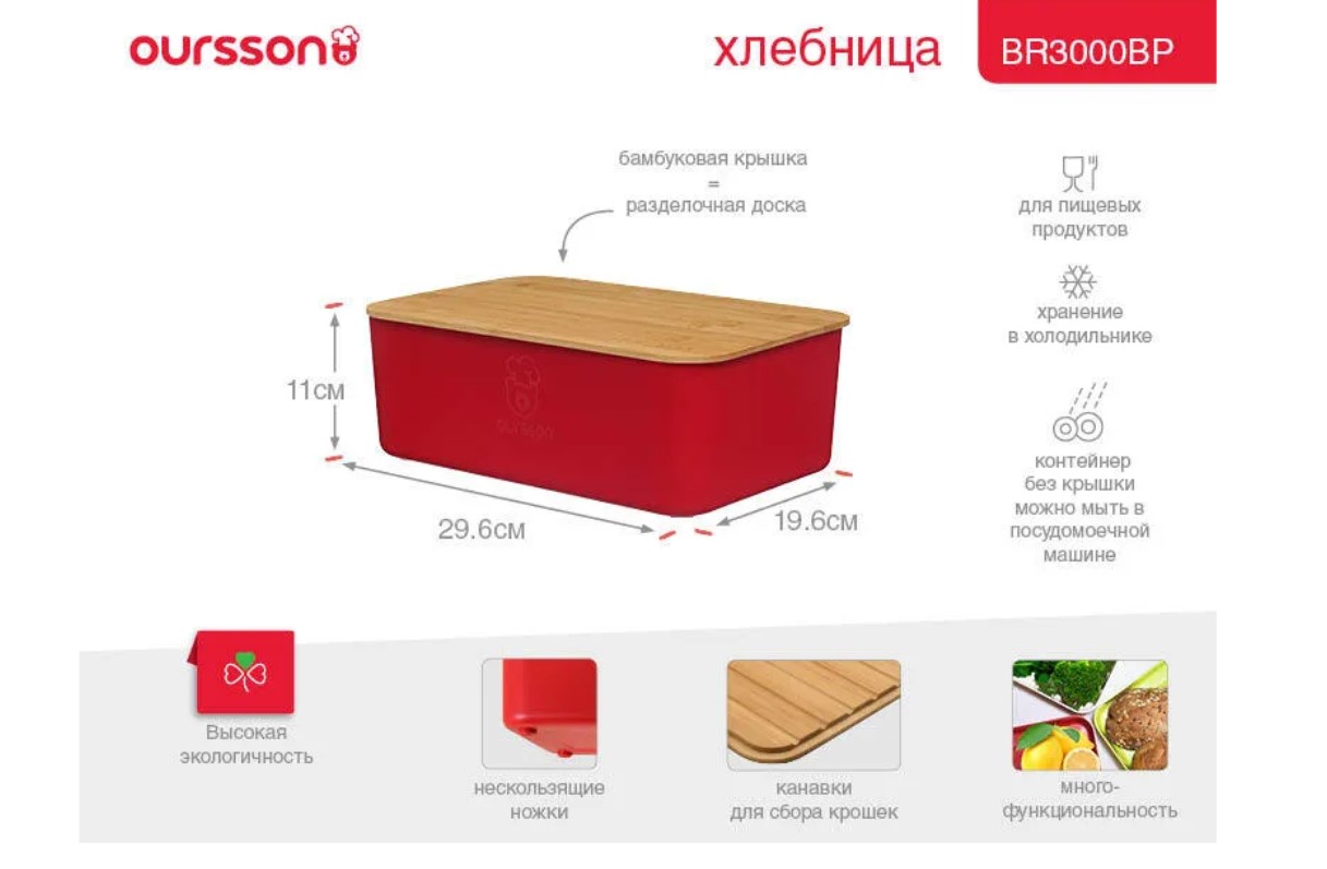 Хлебница OURSSON BR3000BP/RD