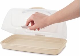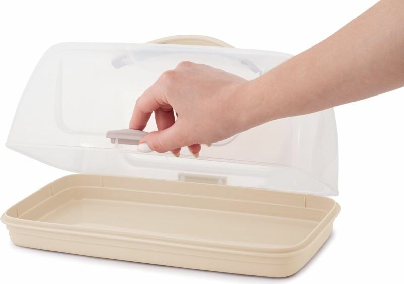 Прозрачный корпус позволяет увидеть содержимое, а при помощи удобной ручки можно использовать хлебницу как контейнер и легко взять ее с собой