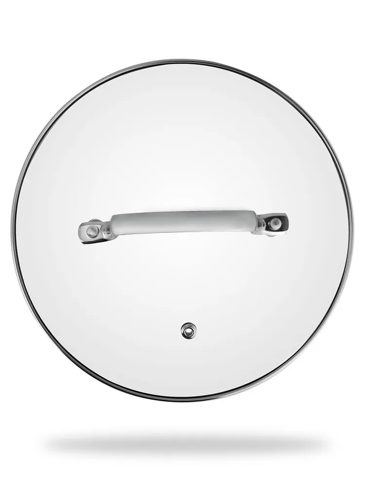 Крышка выполнена из прочного стекла, устойчивого к перепадам температуры. Ручка и обод металлические. Присутствует клапан для выхода пара. Кастрюлю нельзя использовать в духовке. Для тщательной очистки от загрязнений разрешается мыть в посудомоечной машине. Габариты — 22х14,5 см. Вес — 1,8 кг.