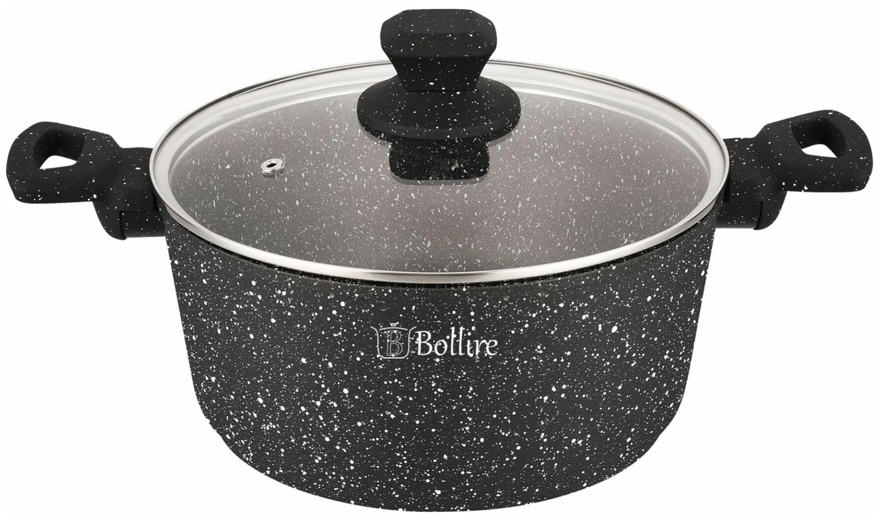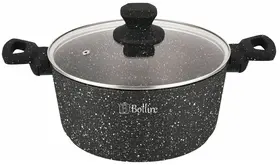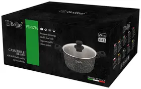многослойное дно; марка антипригарного покрытия PFLUON Marble; материал крышки: стекло; материал ручек: бакелит