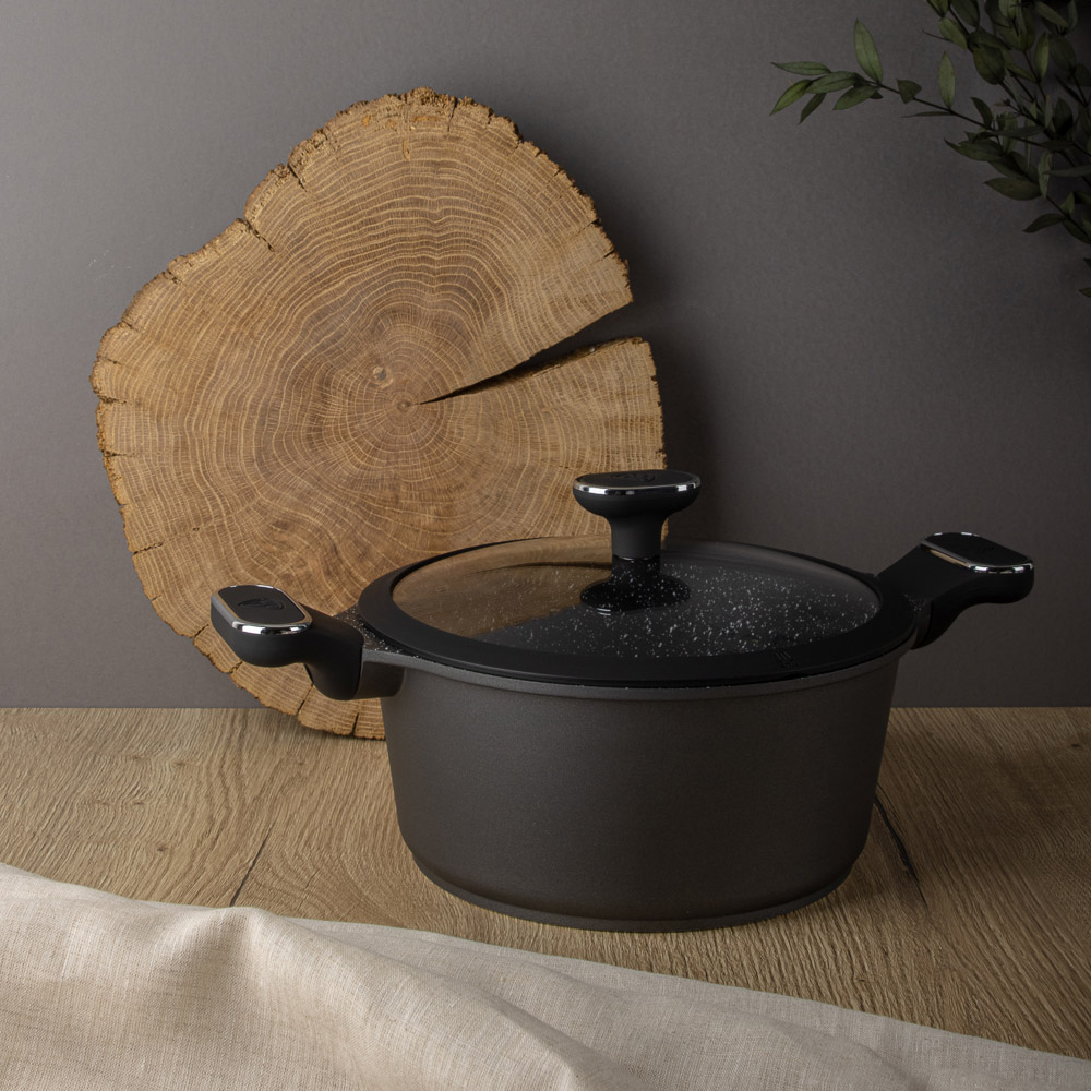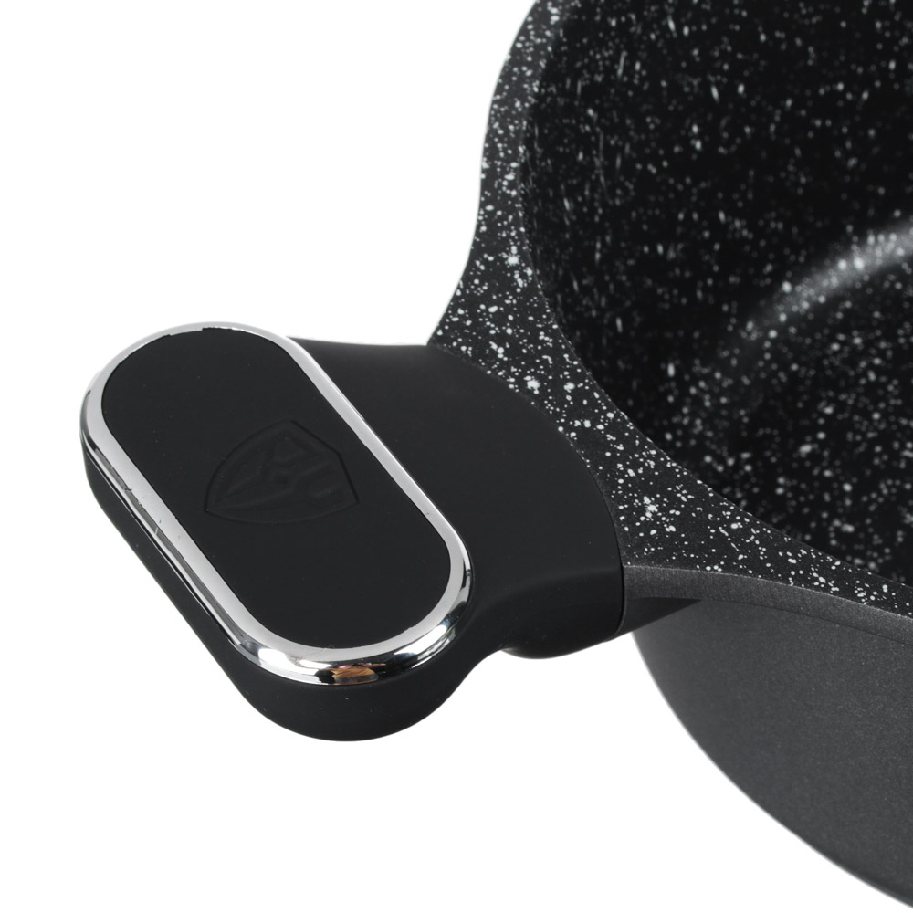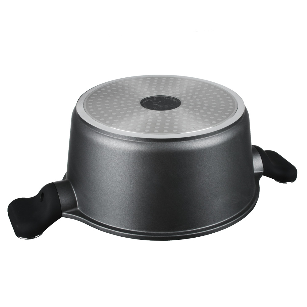 Кастрюля выполнена из литого алюминия устойчивого к деформации.
