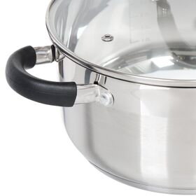 Кастрюля Daniks изготовлена из высококачественной нержавеющей стали марки 18/0, которая отличается надежностью и долговечностью, за счет этого рассчитана на интенсивное использование в течение длительного срока.