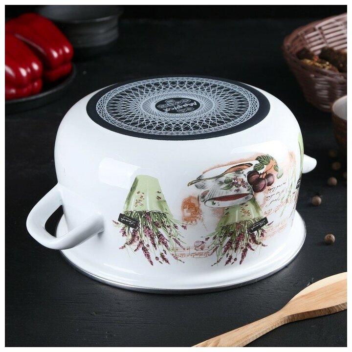 Эмалированная кастрюля выполнена из стали высокого качества с глянцевым эмалированным покрытием внутри и снаружи.