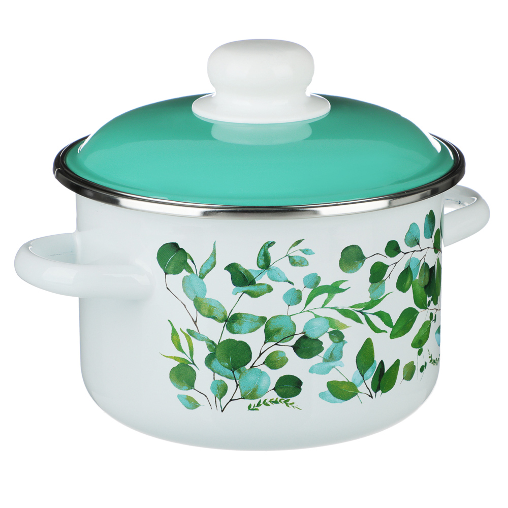Кастрюля эмалированная объемом 2 литра идеальна для приготовления супов, компотов, гарниров, отварных овощей и яиц. Эмалированное покрытие не влияет на вкус продуктов, защищая их от окисления. Легко и быстро отмывается. Имеет приятный дизайн с ненавязчивым рисунком и крышкой благородного бирюзового цвета, поэтому будет привлекательно смотреться на кухне.