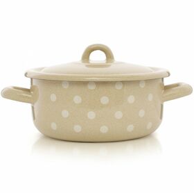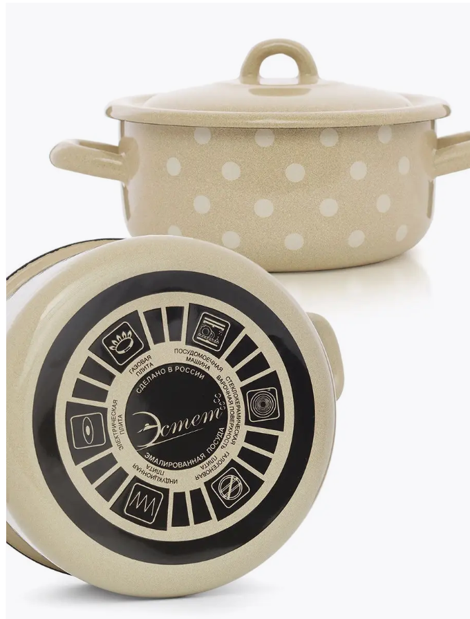 Кастрюля Эстет "Горошинки" изготовлена из высококачественного стального проката и покрыта стеклокерамической эмалью. Внутри и снаружи - трехслойное глянцевое эмалированное покрытие. Эмалевое покрытие, являясь стекольной массой, не вызывает аллергию и надежно защищает пищу от контакта с металлом. Кроме того, такое покрытие долговечно, оно устойчиво к механическому воздействию, не царапается, а стальная основа практически не подвержена механической деформации, благодаря чему срок эксплуатации увеличивается. Крышка с эмалированным покрытием оснащена удобной ручкой, . Она плотно прилегает к краю, сохраняя аромат блюд. Подходит для всех типов плит, включая индукционные. Можно мыть в посудомоечной машине.