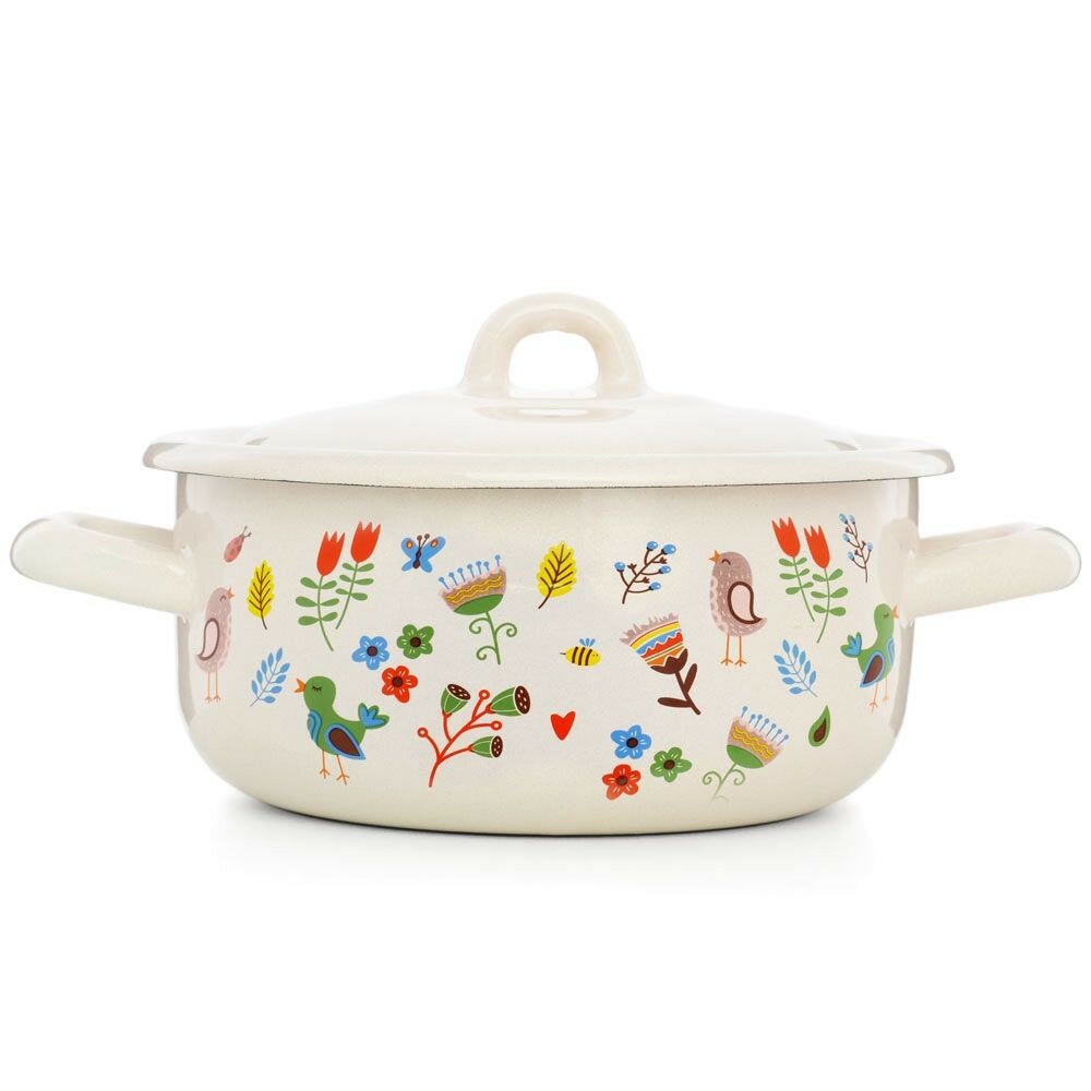 Внутри и снаружи трехслойное глянцевое эмалированное покрытие. Эмалевое покрытие, являясь стекольной массой, не вызывает аллергию и надежно защищает пищу от контакта с металлом.