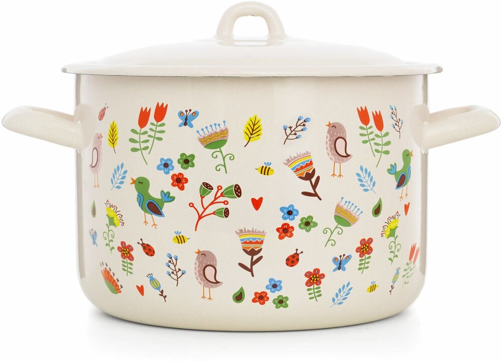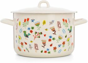 Кастрюля Эстет изготовлена из высококачественного стального проката и покрыта стеклокерамической эмалью. Внутри и снаружи трехслойное глянцевое эмалированное покрытие.