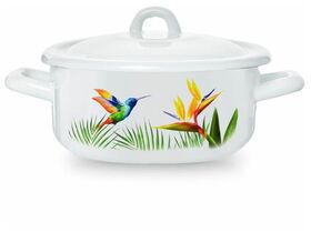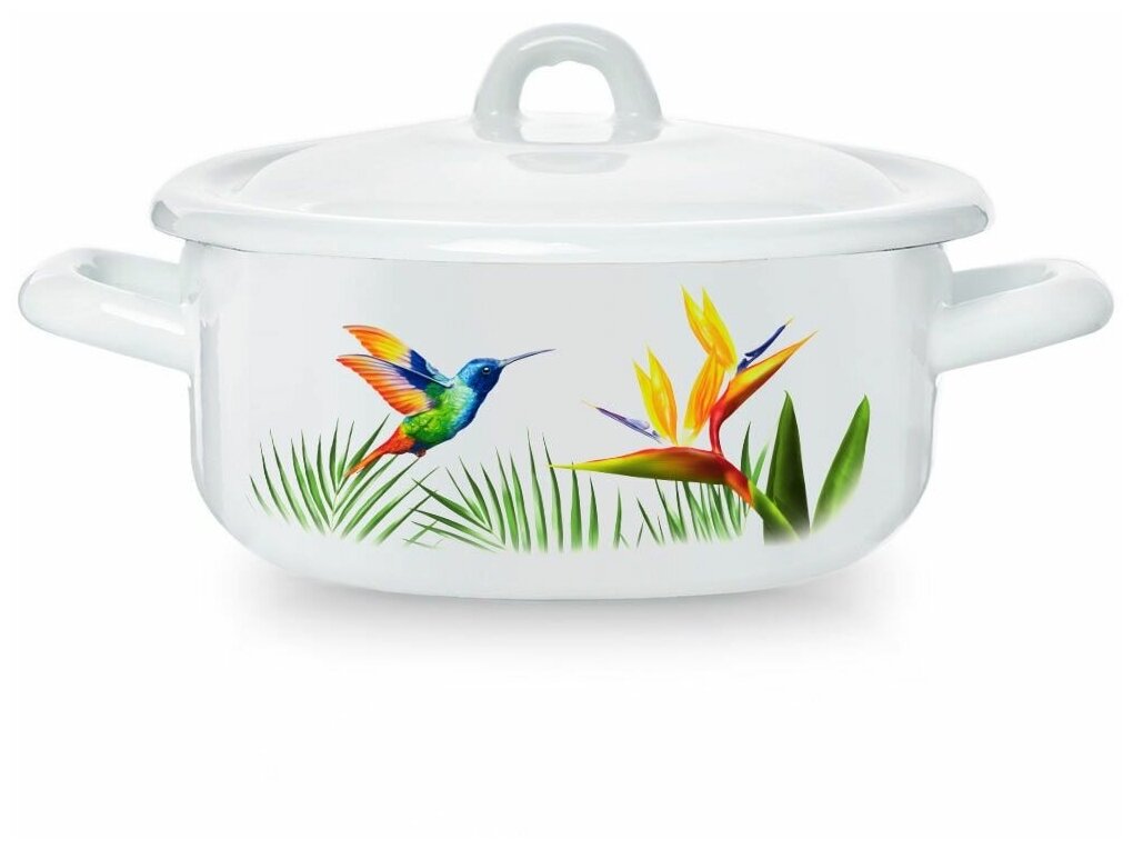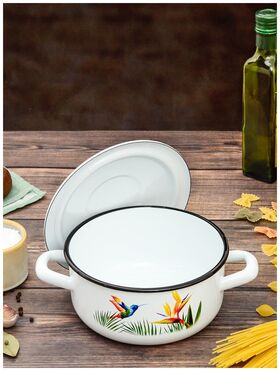Кастрюля Эстет "Колибри" изготовлена из высококачественного стального проката и покрыта стеклокерамической эмалью. Внутри и снаружи - трехслойное глянцевое эмалированное покрытие. Эмалевое покрытие, являясь стекольной массой, не вызывает аллергию и надежно защищает пищу от контакта с металлом. Кроме того, такое покрытие долговечно, оно устойчиво к механическому воздействию, не царапается, а стальная основа практически не подвержена механической деформации, благодаря чему срок эксплуатации увеличивается. Крышка с эмалированным покрытием оснащена удобной ручкой, куполообразная форма крышки минимизирует выкипание в процесе приготовления пищи. Она плотно прилегает к краю, сохраняя аромат блюд. Подходит для всех типов плит, включая индукционные. Можно мыть в посудомоечной машине.