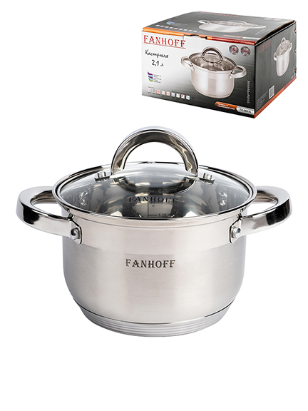 Индукционное капсулированное дно 3,0 мм: 0,5 мм Нержавеющая сталь + 0,5 мм Алюминий + 1,0 мм Нержавеющая сталь + 0,5 мм Алюминий + 0,5 мм Нержавеющая сталь, дно с тиснением логотипа.