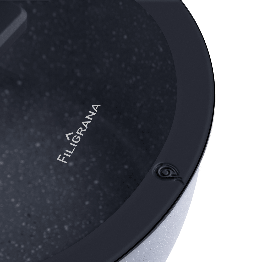 - Экологически чистый кованый алюминий. Посуда серии SAGA обладает устойчивостью к деформации и высокой теплопроводностью.