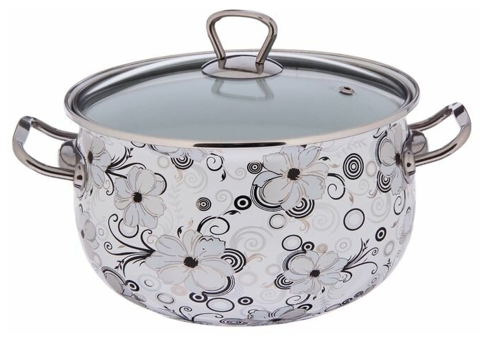 Современная эмалированная кастрюля объёмом 3.1 л идеальный вариант для семьи из 3-4 человек. Изделие выполнено в белом цветовом оформлении с рисунком «Кружево», выглядит стильно и при этом необычно.Крышка из жаропрочного стекла с нержавеющим ободком и отверстием для отвода пара. Эргономичные металлические ручки, благодаря специальной конструкции в процессе использования не нагреваются, исключая возможность получить ожог.Эмалированное покрытие кастрюли экологически безопасно. Оно препятствует размножению бактерий и не требовательно в уходе. Поэтому готовя свои любимые блюда, Вы можете не сомневаться в том, что все вкусовые и полезные свойства продуктов будут сохранены. Кроме того, такую посуду можно мыть в посудомоечной машине и использовать на всех видах плит.