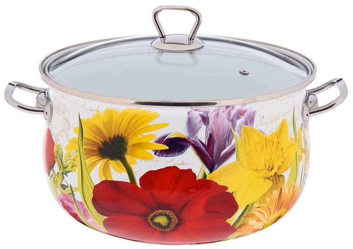 Эмалированная кастрюля TM Interos имеет двойное покрытие эмали. Крышка кастрюли выполнена из жаропрочного стекла с пароотводом. Ручки удобной эргономичной формы, не нагреваются при использовании.