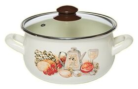 Эмалированная кастрюля Интерос изготовлена в Турции из стали с двойным покрытием из стеклокерамики.Главной же особенностью эмалированной посуды остается возможность мыть в посудомоечной машине и использовать абсолютно на всех видах плит.
