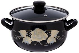 Эмалированная кастрюля Interos 3040 A Черное золото станет отличным дополнением к набору вашей кухонной утвари. Модель весьма функциональна и универсальна в использовании, подойдет для варки супов, гарниров, макарон, овощей, компотов и т. д.Кастрюля изготовлена из высококачественных ударопрочных материалов и снабжена двухслойным керамическим покрытием, не вступающим в реакции с продуктами и не искажающим вкус приготовленных блюд. В комплект поставки входит крышка из закаленного жаростойкого стекла с металлическим ободком и пароотводом. Кастрюля подходит для всех типов плит. Можно мыть в посудомоечной машине.