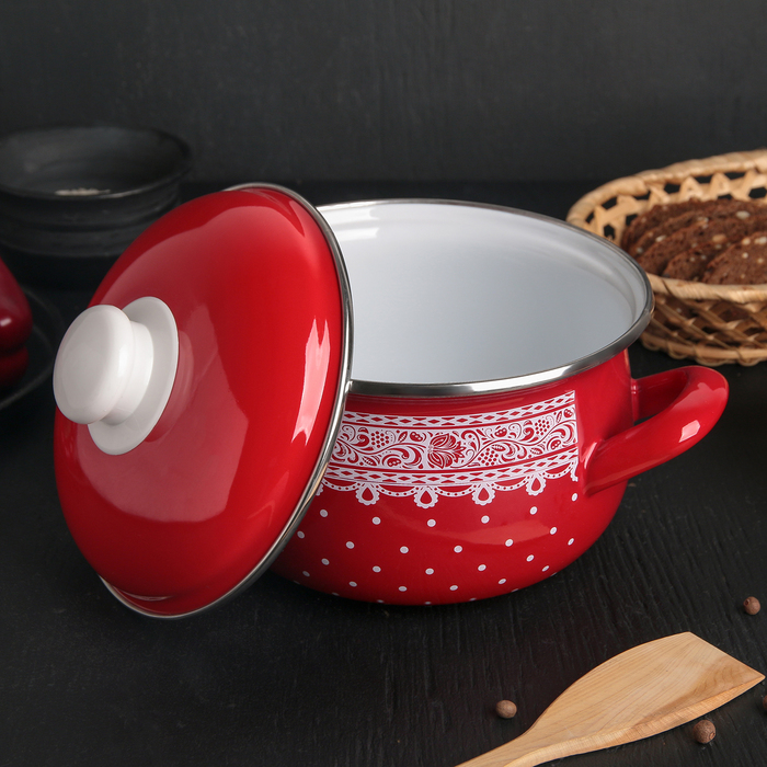 Материал крышки эмалированная сталь с пластмассовой ручкой
