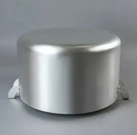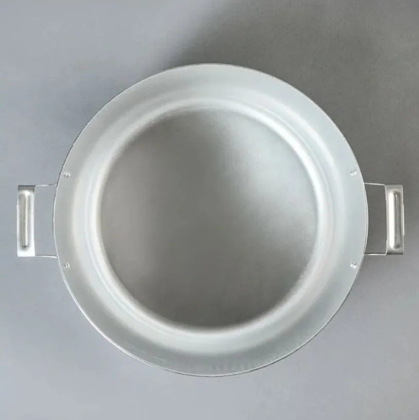 Изготовлена из чистого пищевого алюминия методом штамповки, поэтому обладает такими важными качествами как легкость, прочность, быстрый нагрев, безопасность и доступность. Изделие оснащено металлическими ручками и идет в комплекте с металлической крышкой.