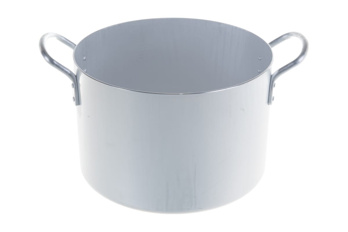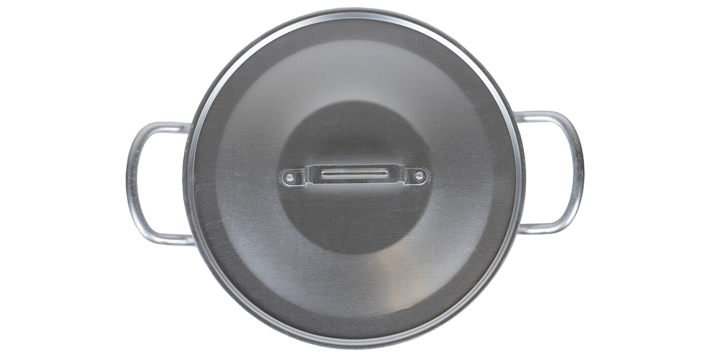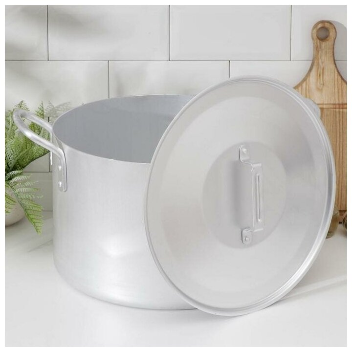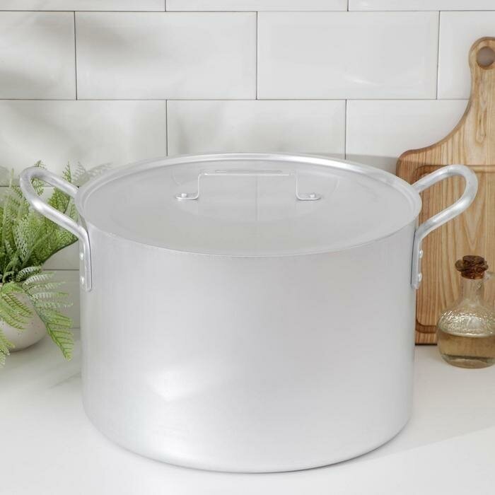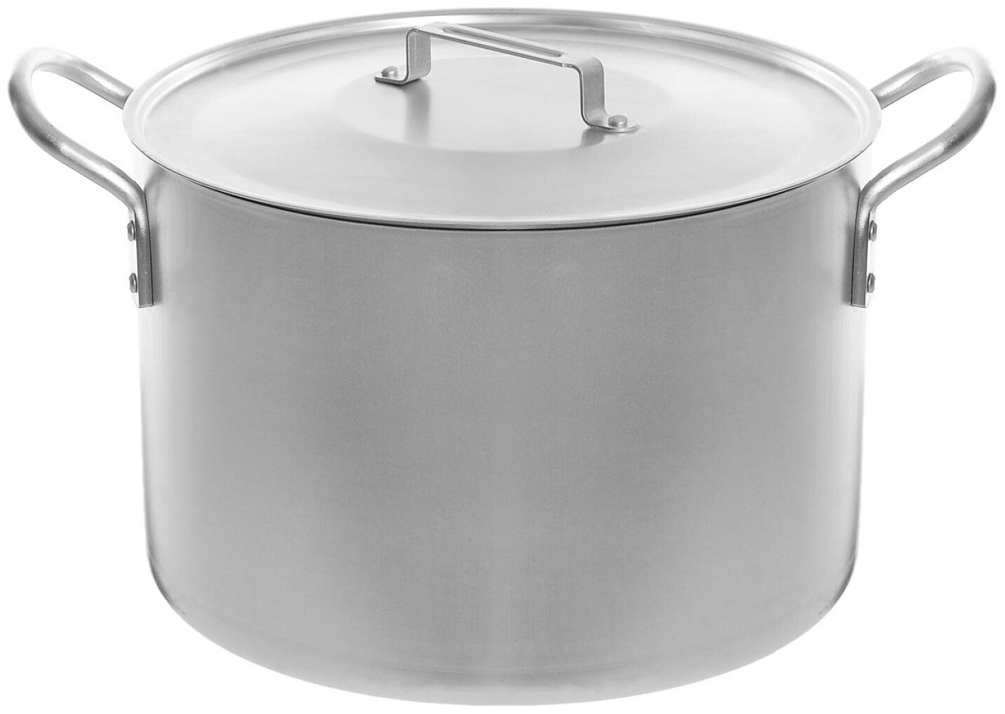 Изготовлен из прочного штампованного алюминия, устойчивого к температурному воздействию. Изделие оснащено металлическими ручками и идет в комплекте с металлической крышкой. Соответствует ГОСТ и отвечает всем санитарно-гигиеническим требованиям.