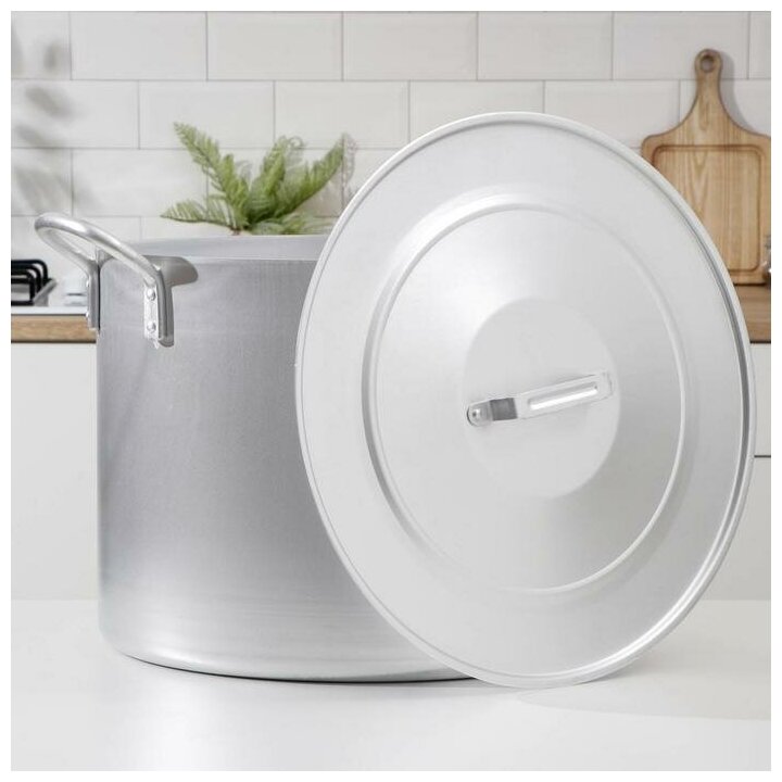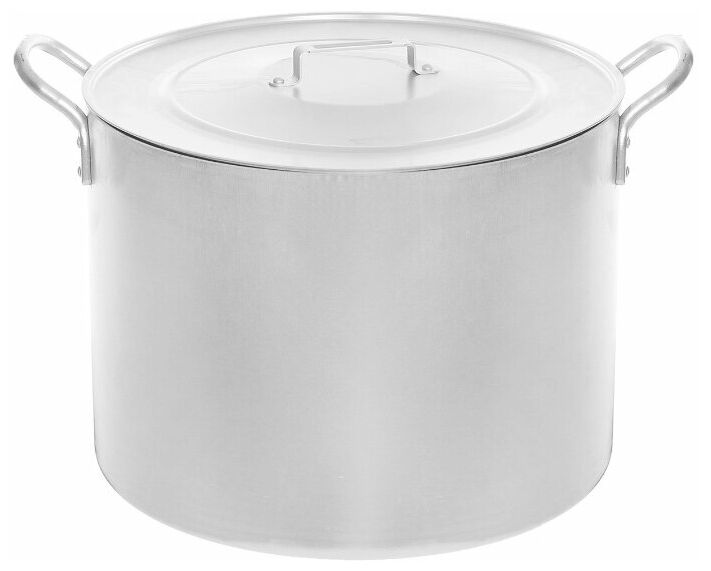 Изготовлен из прочного штампованного алюминия, устойчивого к температурному воздействию. Изделие оснащено металлическими ручками и идет в комплекте с металлической крышкой. Соответствует ГОСТ и отвечает всем санитарно-гигиеническим требованиям.