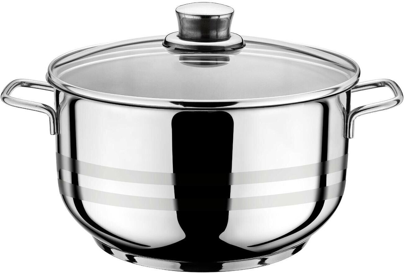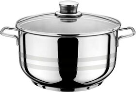 Изделие можно использовать на газовых, чугунных, стеклокерамических, индукционных и галогеновых конфорках. В комплекте прилагается стеклянная крышка с клапаном для выпуска пара. Допускается мойка в посудомоечной машине.