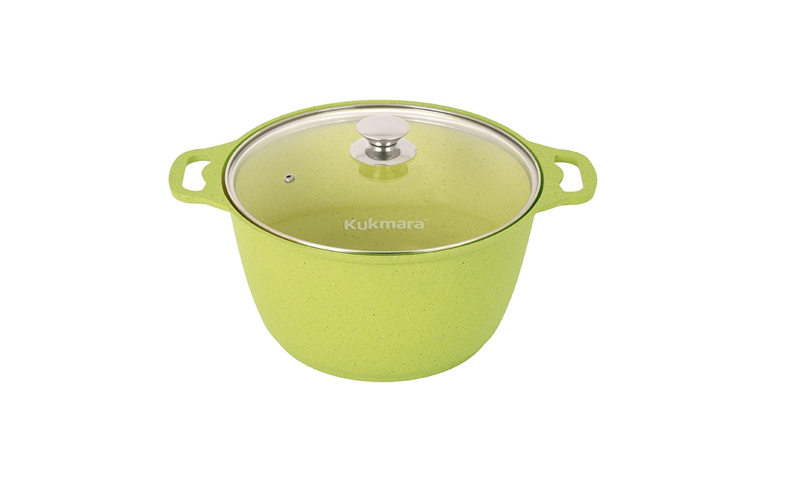 Кастрюля Kukmara с антипригарным покрытием имеет проточенное дно, которое обеспечивает максимальное прилегание дна посуды к плите для более быстрого и равномерного нагрева.