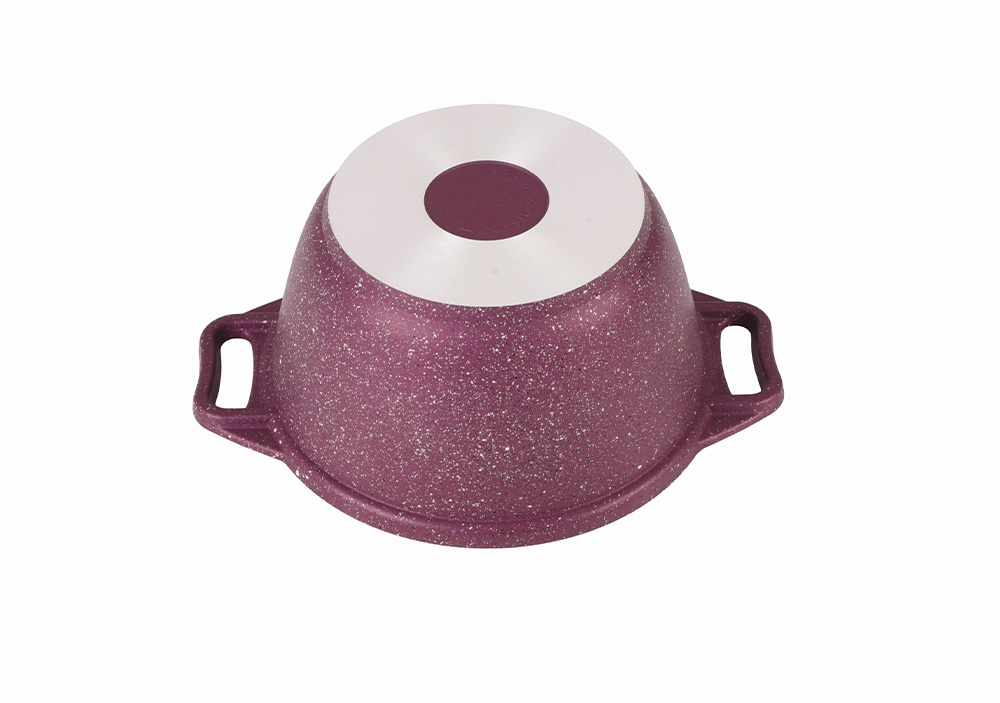 Кастрюля с антипригарным покрытием имеет проточенное дно, которое обеспечивает максимальное прилегание дна посуды к плите для более быстрого и равномерного нагрева.