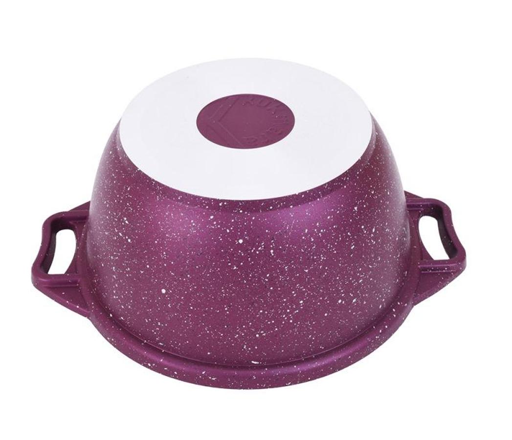 Кастрюля с антипригарным покрытием имеет проточенное дно, которое обеспечивает максимальное прилегание дна посуды к плите для более быстрого и равномерного нагрева.