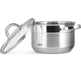 Кастрюля Lara AURORA нержавеющая сталь 13x22 см, 4.8 л, стальные ручки, капсулированное индукционное дно, крышка, предназначена для приготовления еды.