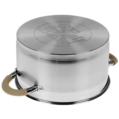 Кастрюля изготовлена из прочной, износостойкой и простой в уходе нержавеющей стали. Посуда на 4.4 л с диаметром 22 см и высотой стенок 12 см позволяет готовить блюда на обычной или индукционной плите. Мыть данную модель можно вручную или в посудомойке.