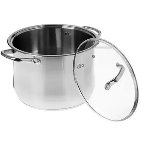 Модель дополнена крышкой из термостойкого стекла с металлическим ободком и рукояткой. Кастрюля на 9.6 литров позволяет приготовить большую порцию еды для всей семьи и гостей. Посуду можно мыть вручную или в посудомойке.