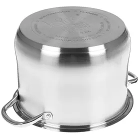 Кастрюля из нержавеющей стали порадует простотой ухода и длительным сроком службы. Данная модель оснащена двумя металлическими ручками на заклепках и внутренними отметками литража. Благодаря пятислойному капсулированному покрытию посуда позволяет готовить блюда на простых и индукционных плитах.