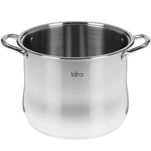 Кастрюля вмещает 13.6 литров, что позволяет готовить блюда в больших объемах. Посуда из нержавеющей стали легко очищается от загрязнений, радует длительным сроком службы. Допускается готовка на простой или индукционной плите, ручная или очистка в посудомоечной машине.