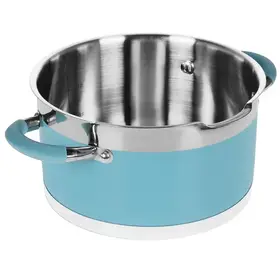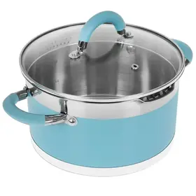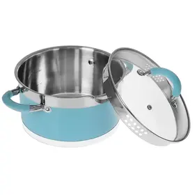 Кастрюля из нержавеющей стали с диаметром дна 20 см вмещает 3.1 л.