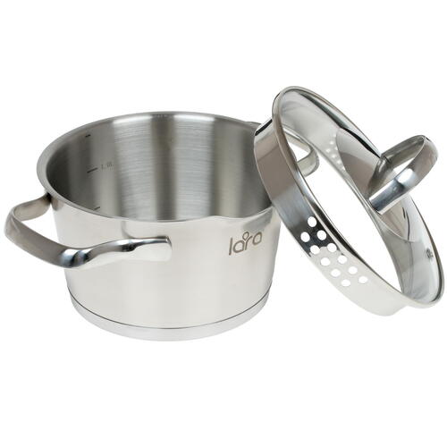 Дополнительно внутренние отметки объема , отверстие в крышке для выпуска пара , встроенный дуршлаг на крышке , подходит для всех типов плит