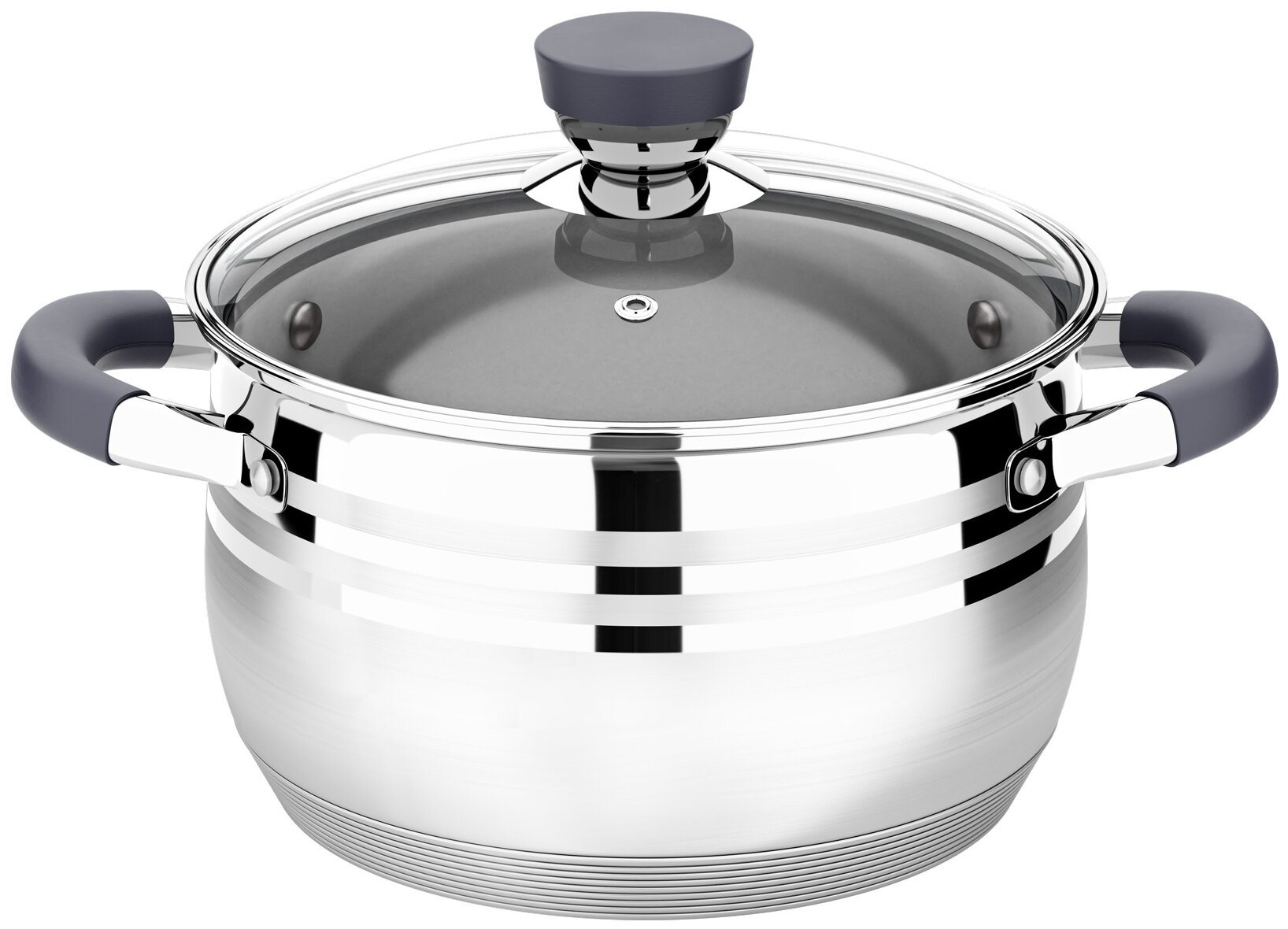 Толстое индукционное капсулированное дно подходит для всех типов плит и обеспечивает равномерный разогрев.