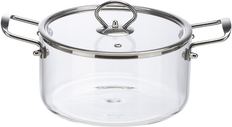 Кастрюля из жаропрочного боросиликатного стекла с крышкой с пароотводом предназначена для приготовления еды.